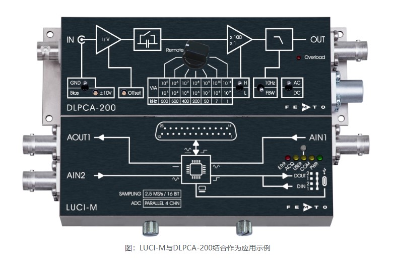 当然,LUCI-M专为FEMTO放大器和照片接收器设计,并结合它们组成了一个多功能的测量和控制单元。
