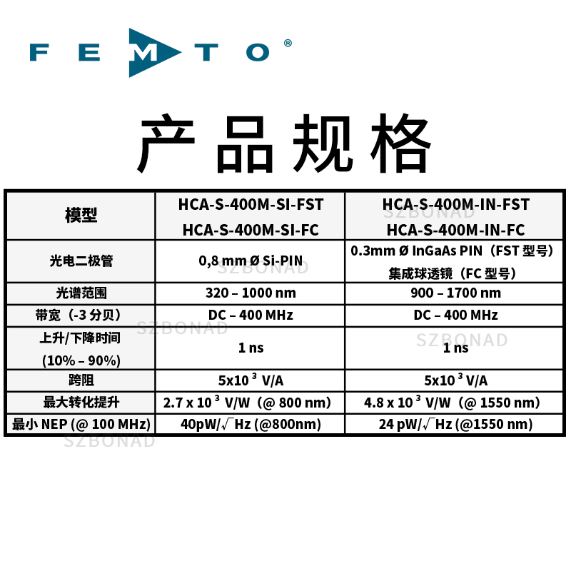 HCA-S系列400MHz光电接收器德国FEMTO|深圳市博纳德精密仪器有限公司 (szbonad.com)