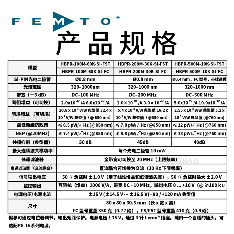HSPR-X和HSA-X-S系列2GHz增益光电接收器德国FEMTO|深圳市博纳德精密仪器有限公司 (szbonad.com)