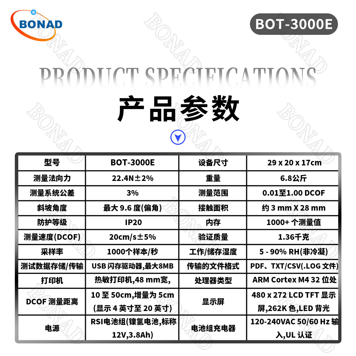 BOT-3000E 在世界各地得到广泛使用,并已成为美国国家标准中业界认可的摩擦试验仪。 是wei一一款以美国标准 ANSI A326.3 命名的设备。