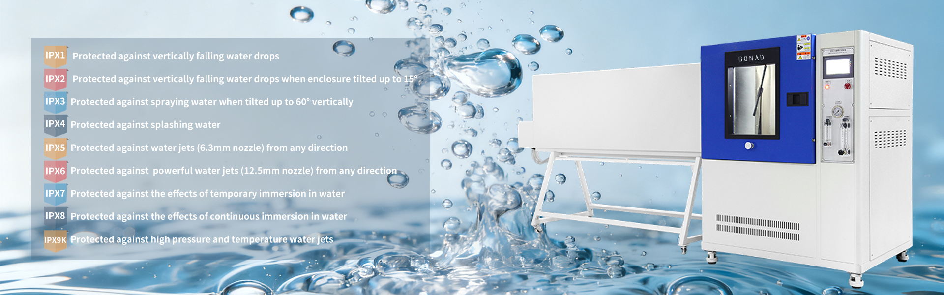 IPX1 to IPX4 Drip rain test and swing pipe waterproof test c