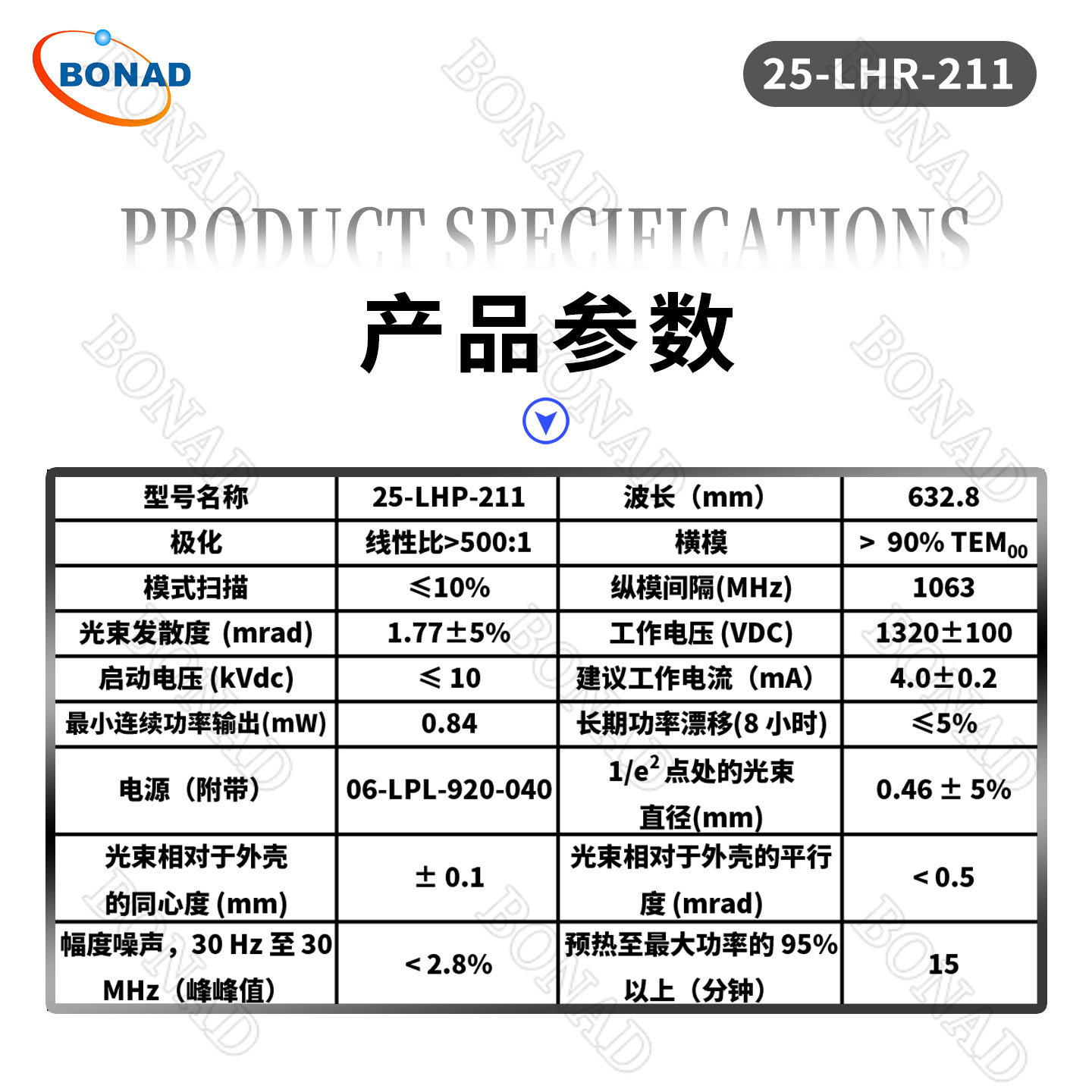 0.84mW小功率632.8 nm红色氦氖激光系统25-LHP-211